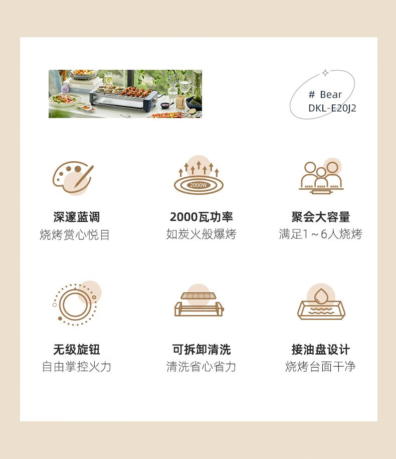 商品名称:小熊(Bear)烧烤炉 电烧烤炉 烧烤架 烤肉机烤串机家用电烤炉烧烤 单层大容量不粘无烟大功率