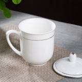 茶杯 陶瓷盖杯中号骨瓷水杯金边会议杯办公杯酒店商务喝茶开会杯子360ml